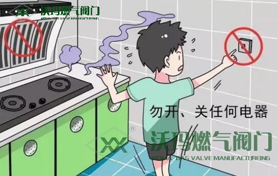 當室內嗅到燃氣氣味時,不要開啟或關閉任何電器。如果開、關電燈、電扇、排氣扇、抽油煙機、空調、電閘、有線與無線電話、門鈴、冰箱等,都可能產生微小火花,導致爆燃、爆炸。