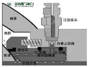 1)球閥注脂嘴在發生失效泄漏時不能直接帶壓在線更換;