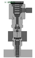 在高壓天然氣管輸系統中,大多數內置止回閥無法有效防止閥門小泄漏的發生。可以向閥門密封系統重新注入少量的清洗液(或流動性好的潤滑脂),浸泡一段時間后就可以有效防止這類泄漏的發生。閥門注脂嘴注入清洗液后,小球和彈簧四周固化的污物在清洗液的浸泡下,將會很快瓦解或者變軟,使止回球和彈簧得到復位,可以有效防止泄漏。如注脂嘴泄漏量大,則會導致注脂 操作不易實施。因此在注入清洗液前,需要安裝泄漏自鎖適配器(如圖5)。